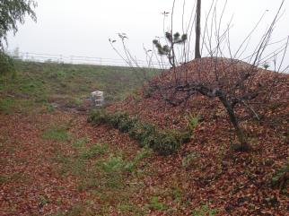 簗館は、延命院の北側にある。遺構は良好に残り、川沿いの道から見ると、よりはっきりとした形で遺構が分かる。
